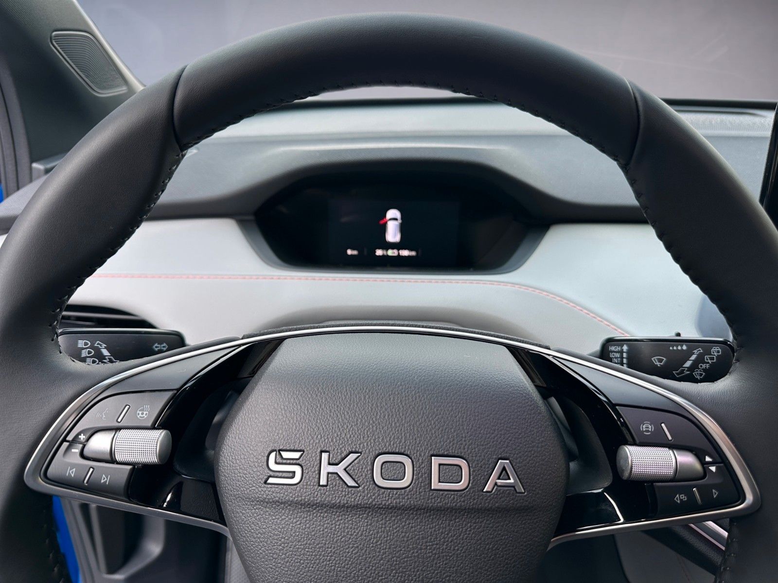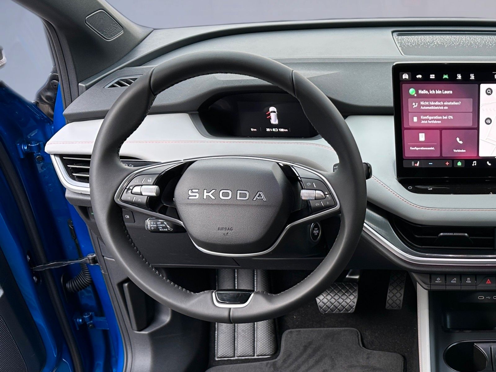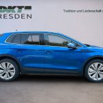 8 Lautsprecher, Ablagefach für Regenschirm, Ablagefach Türverkleidung hinten, Ablagefächer (Gepäck-/Laderaum), Airbag Beifahrerseite abschaltbar, Airbag Fahrer-/Beifahrerseite, Akustischer Fußgängerschutz, Außensound (e-sound), Ambiente-Beleuchtung LED, Antriebsart: Heckantrieb, Außenspiegel elektr. verstell-, heiz- und anklappbar, mit Abblendautomatik, Außenspiegel Wagenfarbe, Chrom-Paket, Dachhimmel grau, Dachhimmel schwarz, Design Selection Lodge, Easy Start (Keyless Easy Entry), Elektromotor 210 kW (cont. 89 kW), Fahrassistenz-System: Abbiegebremsfunktion und Ausweichunterstützung, Fahrassistenz-System: Auffahrwarnsystem mit City-Notbremsfunktion (Frontradar-Assistent), Fahrassistenz-System: Autom. Distanzregelung (ACC) mit Frontradar-Assistent (bis 210 km/h), Fahrassistenz-System: Intelligente Geschwindigkeitsanpassung (ISA) inkl. Speed-Limiter, Fahrassistenz-System: Multikollisionsbremse (Multi Collision Brake), Fahrassistenz-System: Müdigkeitserkennung, Fahrassistenz-System: Spurwechselassistent inkl. Auspark-Assistent und Ausstiegswarnung, Fahrassistenz-System: Verkehrszeichenerkennung, Fensterheber elektrisch vorn + hinten, Fußraumbeleuchtung vorn und hinten LED, Gepäck-/Laderaumabdeckung, Geschwindigkeits-Begrenzeranlage, Getriebe für Elektrofahrzeug, Heckleuchten LED, Heckscheibenwischer, HV-Batterie 82 kWh brutto / 77 kWh netto, Infotainment-System mit 13" Display, Innenspiegel mit Abblendautomatik, Insassen-Schutzsystem proaktiv, Isofix-Aufnahmen für Kindersitz an Beifahrersitz und Rücksitze außen (inkl. Top Tether), Karosserie: 5-türig, Kindersicherung, manuell, Klimaanlage Climatronic 2-Zonen, Kofferraumbeleuchtung, Kombiinstrument digital (virtual cockpit), Komfort-Freisprecheinrichtung Bluetooth, mit Sprachsteuerung, Komfortsitze vorn, Kopf-Airbag-System, Kopfstützen vorn und hinten verstellbar, Ladekabel mit Typ 2-Stecker (Mode 3), Lenksäule (Lenkrad) verstellbar (vertikal / axial), Leuchtweitenregelung, Licht- und Regensensor, Lichtassistent (Coming Home, Leaving Home), LM-Felgen, Parkbremse elektronisch, Radioempfang digital (DAB+), Radstand Standard, Reifen-Reparaturkit, Reifendruck-Kontrollsystem, Rückfahrkamera, Rücksitz geteilt / klappbar (60:40) Mittelarmlehne und Durchladefunktion, Scheinwerfer LED, Schnellladevorrichtung (CCS-Ladedose), Seitenairbag vorn, Seitenairbag vorn mitte (Center-Airbag), Servolenkung elektronisch (Servotronic), Sitzbezug / Polsterung: Stoff/Kunstleder Lodge schwarz, Sitze vorn höhenverstellbar inkl. Lendenwirbelstütze verstellbar, Sitzheizung vorn, Smart-Paket, Sonderlackierung Energy-Blau, Sonnenblenden mit Spiegel (LED-Beleuchtung), Steckdose (12V-Anschluß) im Koffer-/Laderaum, Stoßfänger vorn und hinten mit Unique Dark Chrom-Applikationen, Textilfussmatten, Türgriffe außen Wagenfarbe, USB-Schnittstelle vorn (2-fach, Typ C), Vorbereitung für Alkohol-Wegfahrsperre (Alcolock), Warnanlage für Sicherheitsgurte hinten, Warnanlage für Sicherheitsgurte, Fahrer-/Beifahrerseite, Wireless SmartLink