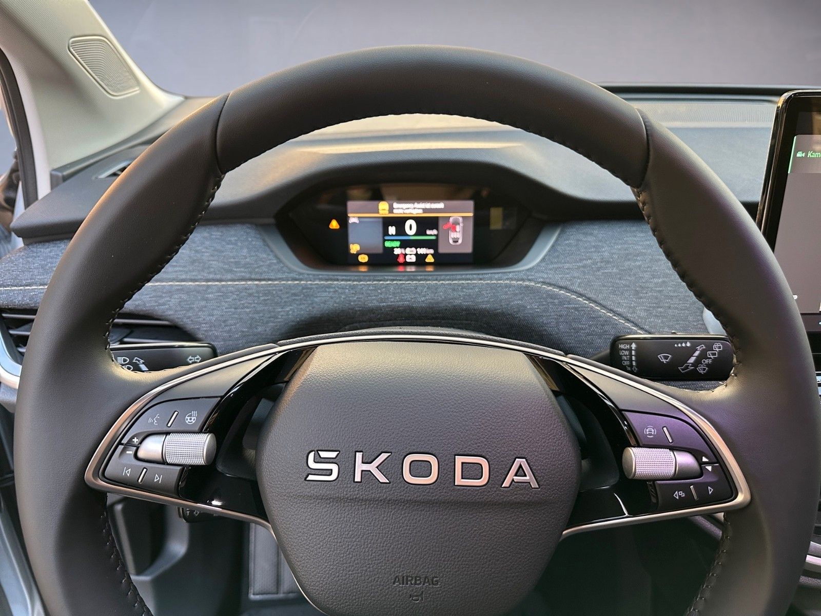 8 Lautsprecher, Ablagefach für Regenschirm, Ablagefach Türverkleidung hinten, Ablagefächer (Gepäck-/Laderaum), Airbag Beifahrerseite abschaltbar, Airbag Fahrer-/Beifahrerseite, Akustischer Fußgängerschutz, Außensound (e-sound), Ambiente-Beleuchtung LED, Antriebsart: Heckantrieb, Außenspiegel elektr. verstell-, heiz- und anklappbar, mit Abblendautomatik, Außenspiegel Wagenfarbe, Chrom-Paket, Dachhimmel grau, Design Selection Loft, Easy Start (Keyless Easy Entry), Elektromotor 210 kW (cont. 89 kW), Fahrassistenz-System: Abbiegebremsfunktion und Ausweichunterstützung, Fahrassistenz-System: Auffahrwarnsystem mit City-Notbremsfunktion (Frontradar-Assistent), Fahrassistenz-System: Intelligente Geschwindigkeitsanpassung (ISA) inkl. Speed-Limiter, Fahrassistenz-System: Multikollisionsbremse (Multi Collision Brake), Fahrassistenz-System: Müdigkeitserkennung, Fahrassistenz-System: Spurwechselassistent inkl. Auspark-Assistent und Ausstiegswarnung, Fahrassistenz-System: Verkehrszeichenerkennung, Fensterheber elektrisch vorn + hinten, Fußraumbeleuchtung vorn und hinten LED, Gepäck-/Laderaumabdeckung, Geschwindigkeits-Begrenzeranlage, Getriebe für Elektrofahrzeug, Heckleuchten LED, Heckscheibenwischer, HV-Batterie 82 kWh brutto / 77 kWh netto, Infotainment-System mit 13" Display, Innenausstattung: Dekoreinlagen Anthrazit glanzlackiert, Innenausstattung: Dekoreinlagen Fairy Dust, Innenspiegel mit Abblendautomatik, Insassen-Schutzsystem proaktiv, Isofix-Aufnahmen für Kindersitz an Beifahrersitz und Rücksitze außen (inkl. Top Tether), Karosserie: 5-türig, Kindersicherung, manuell, Kofferraumbeleuchtung, Kombiinstrument digital (virtual cockpit), Komfort-Freisprecheinrichtung Bluetooth, mit Sprachsteuerung, Komfortsitze vorn, Kopf-Airbag-System, Kopfstützen vorn und hinten verstellbar, Ladekabel mit Typ 2-Stecker (Mode 3), Lenksäule (Lenkrad) verstellbar (vertikal / axial), Leuchtweitenregelung, Licht- und Regensensor, Lichtassistent (Coming Home, Leaving Home), LM-Felgen, Parkbremse elektronisch, Radioempfang digital (DAB+), Radstand Standard, Reifen-Reparaturkit, Reifendruck-Kontrollsystem, Rückfahrkamera, Rücksitz geteilt / klappbar (60:40) Mittelarmlehne und Durchladefunktion, Scheinwerfer LED, Schnellladevorrichtung (CCS-Ladedose), Seitenairbag vorn, Seitenairbag vorn mitte (Center-Airbag), Servolenkung elektronisch (Servotronic), Sitzbezug / Polsterung: Stoff/Kunstleder mit Kontraststeppung Grün, Sitze vorn höhenverstellbar inkl. Lendenwirbelstütze verstellbar, Sitzheizung vorn, Smart-Paket, Sonderlackierung Energy-Blau, Sonnenblenden mit Spiegel (LED-Beleuchtung), Steckdose (12V-Anschluß) im Koffer-/Laderaum, Stoßfänger vorn und hinten mit Unique Dark Chrom-Applikationen, Textilfussmatten, Türgriffe außen Wagenfarbe, USB-Schnittstelle vorn (2-fach, Typ C), Vorbereitung für Alkohol-Wegfahrsperre (Alcolock), Warnanlage für Sicherheitsgurte hinten, Warnanlage für Sicherheitsgurte, Fahrer-/Beifahrerseite, Wireless SmartLink