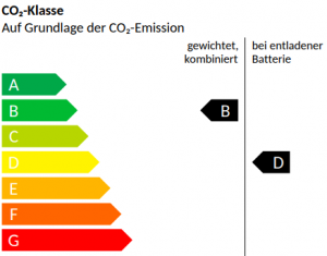 Verbrauchs- und Emissionsangaben nach WLTP: Energieverbrauch (gewichtet, kombiniert): 16,5 kWh/100 km plus 0,4 l/100 km; CO₂-Emissionen (gewichtet, kombiniert): 8 g/km3; CO2-Klasse (CO2 Emissionen) gewichtet, kombiniert: B, bei entladener Batterie: D ; Elektrische Reichweite (EAER): 125 km